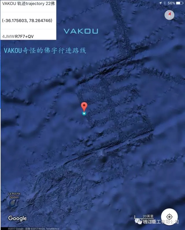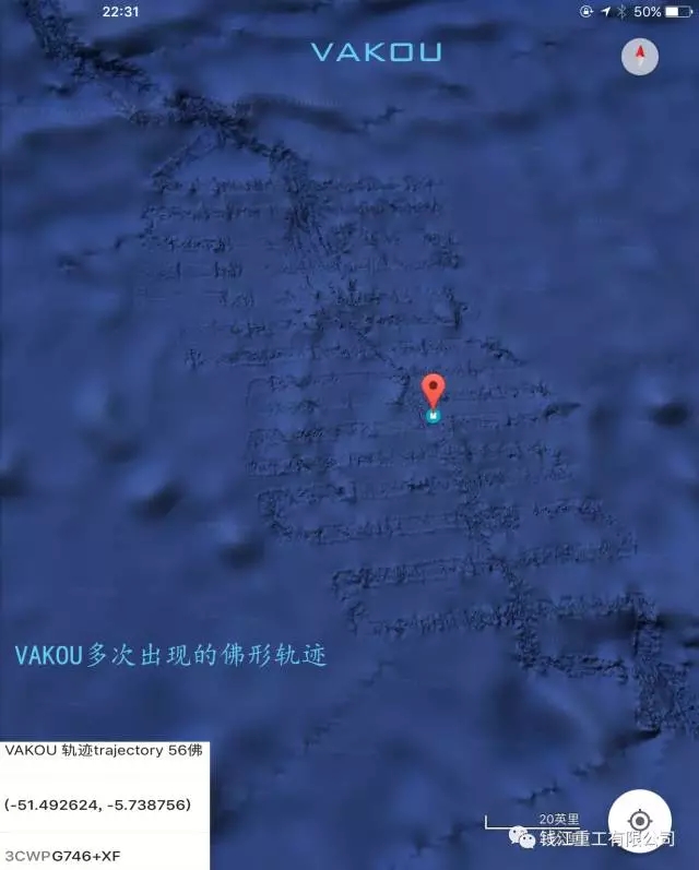 馬上想起了百慕大之謎,果然看到的圖像更加恐怖,也更加確信這是一種智能文明的結(jié)果,而不是自然的結(jié)果!請(qǐng)注意右下角的地圖比例,以說(shuō)明VAKOU的寬度。