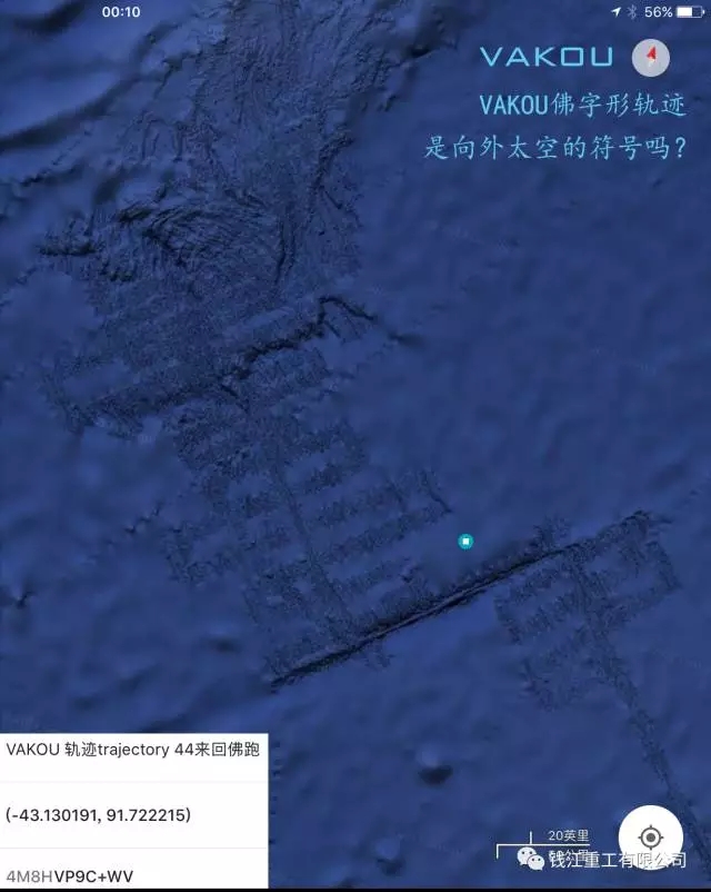 VAKOU佛字形 軌跡,**令我們驚奇的圖像,這是一種智能文明的行為結(jié)果,是向外太空的符號(hào)嗎?佛形軌跡,之后又發(fā)現(xiàn)很多的類似軌跡;這可能就是馬航MH370失蹤的區(qū)域。