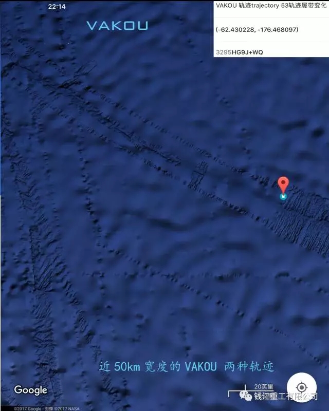 這是日本海溝的VAKOU行動(dòng)軌跡,在看見(jiàn)這個(gè)圖像**初的感覺(jué)不是自然形成的,而是在一種設(shè)備的行動(dòng)軌跡,但軌跡的寬度之大確實(shí)嚇壞的 我們,15km的機(jī)器寬度,我們暫時(shí)給這個(gè)龐然大物命名為“VAKOU”!